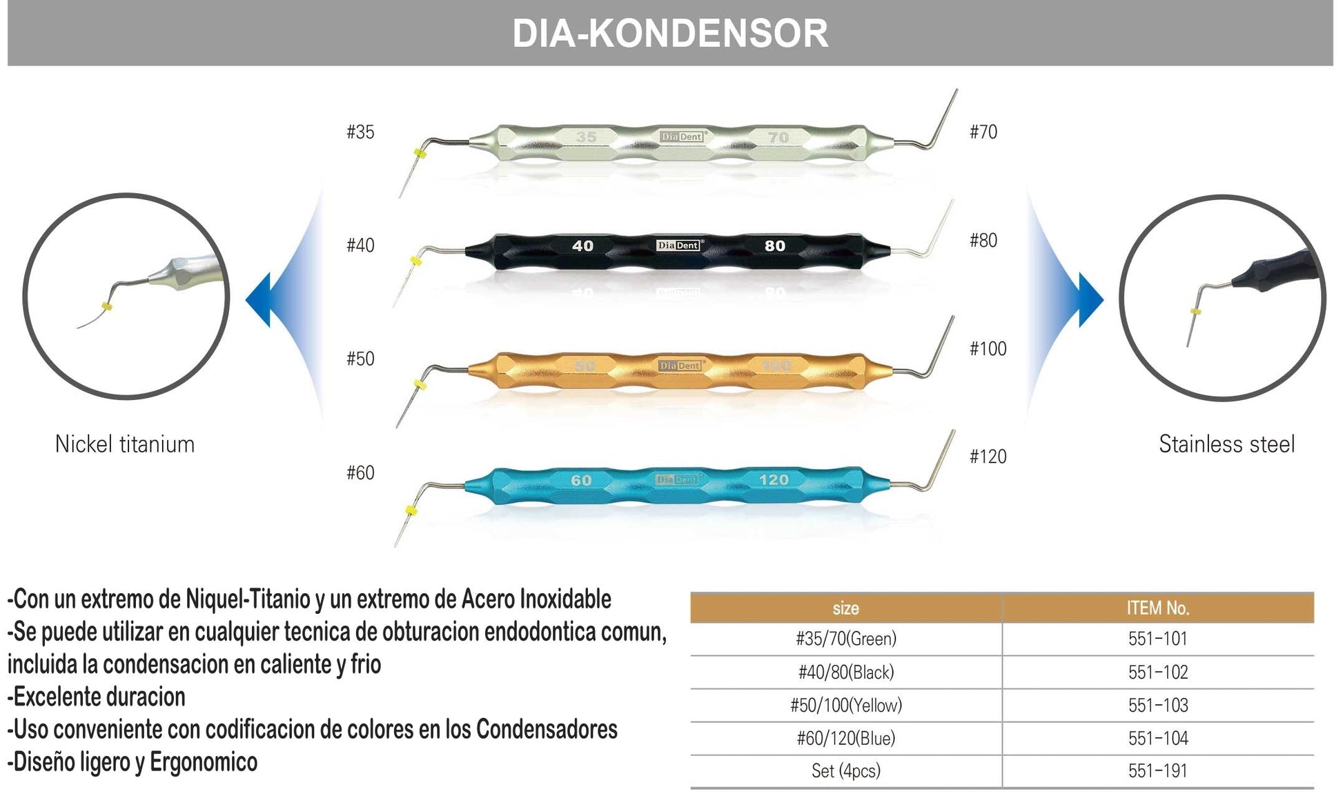 Dia-Kondensor , Condensador Manual de Guttapercha para tecnica de onda continua Con 4 Inst.